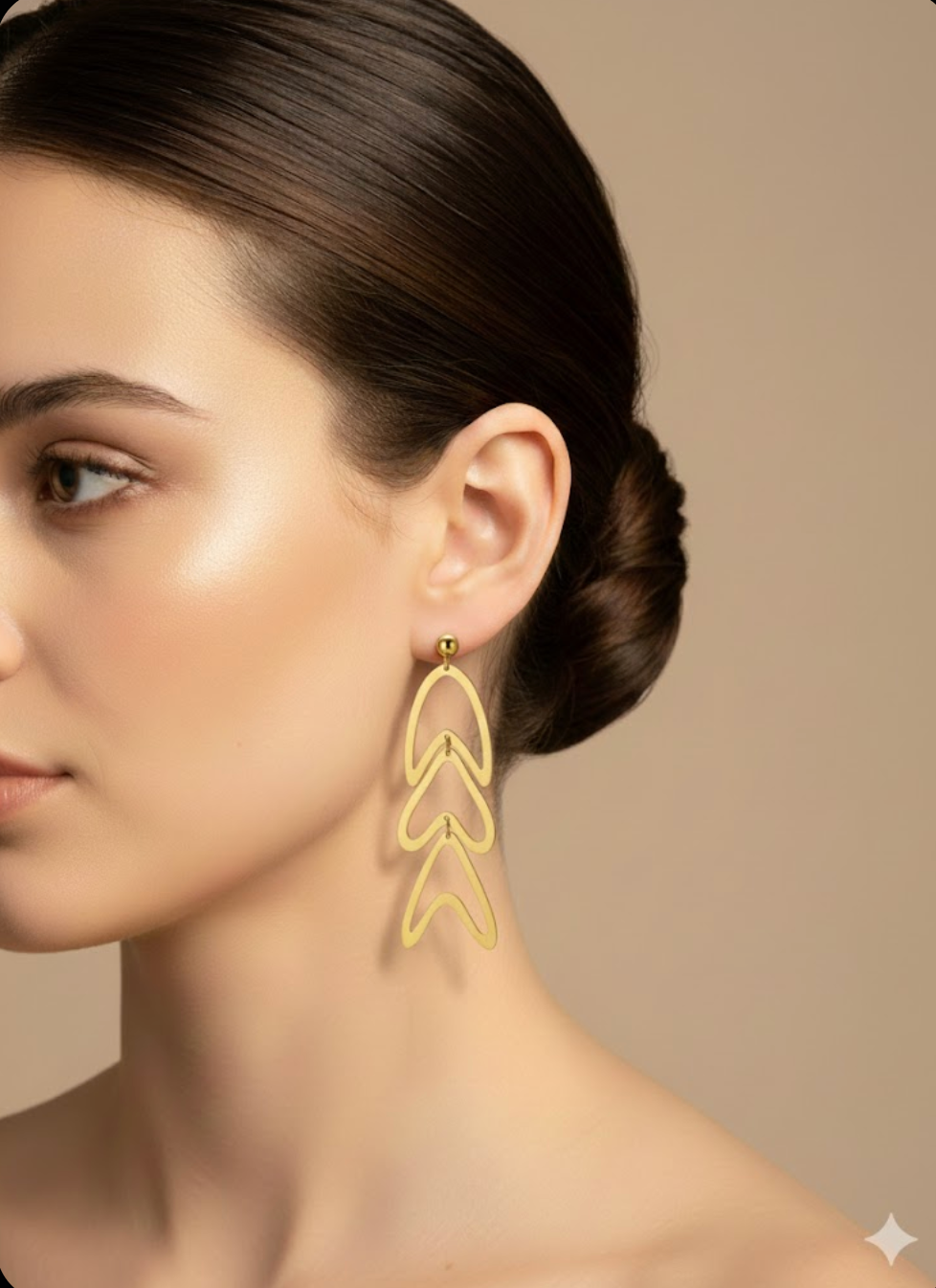 Cascade Arrow Gold Drops feature an architectural design with layered arrow-shaped frames that create striking visual depth. The open silhouette...