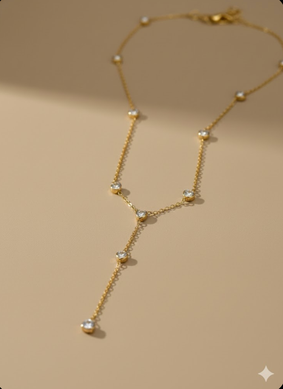 A delicate Y-shaped necklace designed with evenly spaced crystal accents on a fine gold-toned chain. Crafted in anti-tarnish imitation metal,...