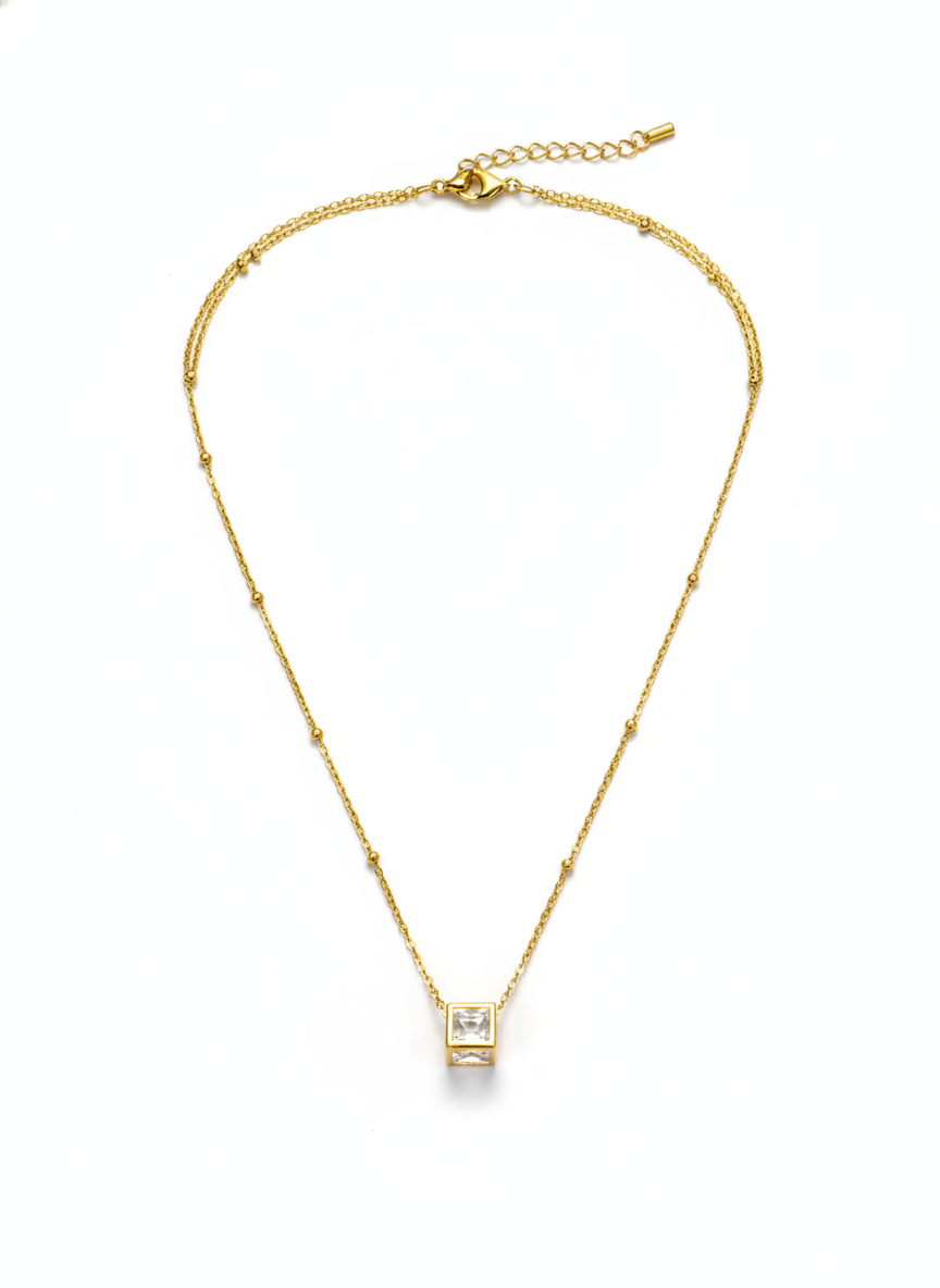 Square-Cut Crystal Pendant Necklace